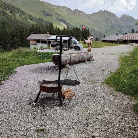 Der Stellplatz befindet sich auf der Alp „Unteres Stuedeli“ und ist ab Feutersoey auf einer gebührenpflichtigen Strasse erreichbar. Der Camping liegt auf 1570 m.ü.M.
